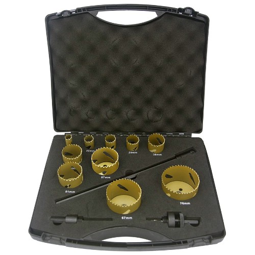 3834-SET-94 Hålsågsats med de nio vanligaste hålsågarna för arbeten inom verkstad, VVS och elinstallation.Innehåller hålsågar: 16, 19, 22, 25, 30, 35, 41, 51, 67 mm samt hållare 3834-ARBR-1130 och 3834-ARBR-11152 .